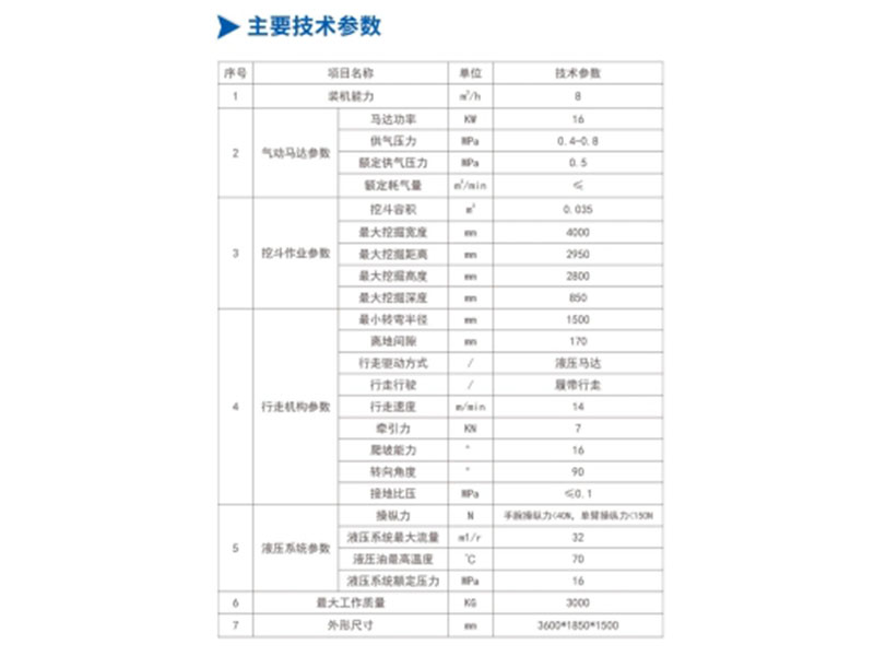 2.體積小移動(dòng)靈活,礦用氣動(dòng)巷道挖掘機(jī)的設(shè)計(jì)寬度以井下質(zhì)量標(biāo)準(zhǔn)中人行道寬度zui低0.8米為上限,滿(mǎn)足90%以上的變形巷道施工條件
